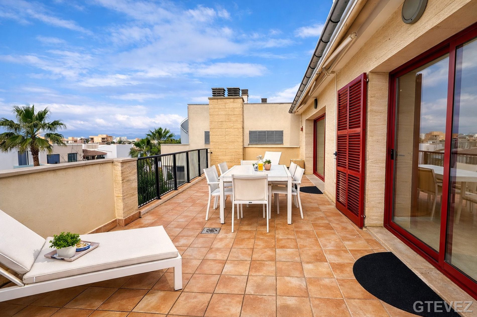 Ático luminoso con terraza de 35 m², piscina, jardín y 2 parkings – a 5 min de la playa (Palma – Sometimes) Se vende luminoso ático con gran terraza privada de 35 m² situado en la tranquila zona de Sometimes (Palma de Mallorca), a solo 5 minutos de Playa de Palma y con excelente conexión con el aeropuerto y el centro de la ciudad. La vivienda dispone de 87 m² construidos con una distribución cómoda y funcional. Destaca su amplia terraza orientada para disfrutar del sol durante todo el día, perfecta para crear un comedor exterior o espacio de relax. El ático cuenta con 3 dormitorios (2 dobles) con armarios empotrados completamente vestidos interiormente y 2 baños completos, uno de ellos en suite, lo que aporta mayor comodidad y privacidad. La vivienda se vende equipada con electrodomésticos y dispone de aire acondicionado frío/calor nuevos en todas las estancias, garantizando confort durante todo el año. Forma parte de una finca con ascensor dentro de una comunidad muy tranquila con solo 3 vecinos (uno por planta), lo que proporciona mayor privacidad y exclusividad. La comunidad dispone de agradables zonas comunes con piscina y jardín comunitario, ideales para disfrutar del buen clima durante todo el año. El precio incluye 2 plazas de parking, un valor añadido muy importante en la zona. Situado en Sometimes, una zona residencial muy demandada muy próximo a la playa, con todos los servicios cercanos: supermercados, transporte público, colegios, restaurantes y zonas de ocio. Excelente conexión con el aeropuerto de Palma (a pocos minutos)Acceso rápido a autopistas Una propiedad ideal tanto como residencia habitual, segunda vivienda o inversión, en una de las zonas con mayor demanda de Palma. 📞 Contacta para más información o para concertar una visita